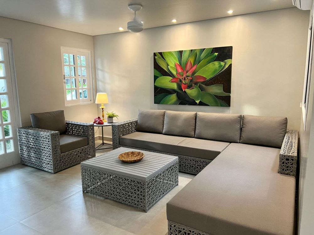 - Sala de Estar: Sofás confortáveis, mesa de centro, ventilador de teto, ar-condicionado e TV Smart para momentos de relaxamento.